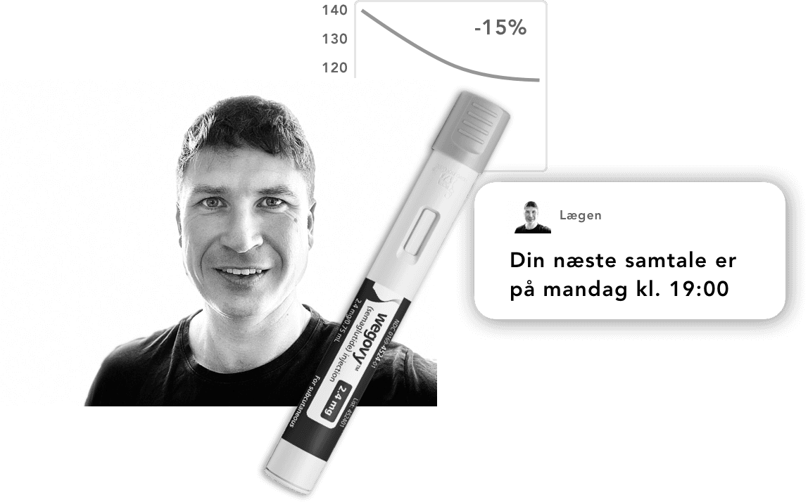 Vi hjælper dig med et sundt vægttab, hvor vi anvender medicin i kombination med sunde livsstilsændringer, for at få det mest effektive medicinske vægttabsforløb - med mindst mulig anvendelse af medicin.
